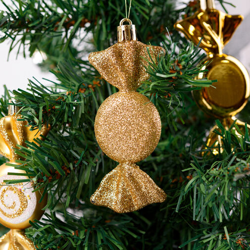 Ez az arany színű, cukorka formájú karácsonyfadísz kiválóan illik a karácsonyi dekorációhoz. A csillogó felülete visszaveri a környezeti fényeket, így lenyűgöző látványt nyújt. A tartós műanyagból készült dísz sok évig ékesítheti karácsonyfáját. Fenyőfa, girlandok, asztali díszek dekorálásánál elengedhetetlen kiegészítő lehet, amely varázslatos, ünnepi hangulatot teremt.
